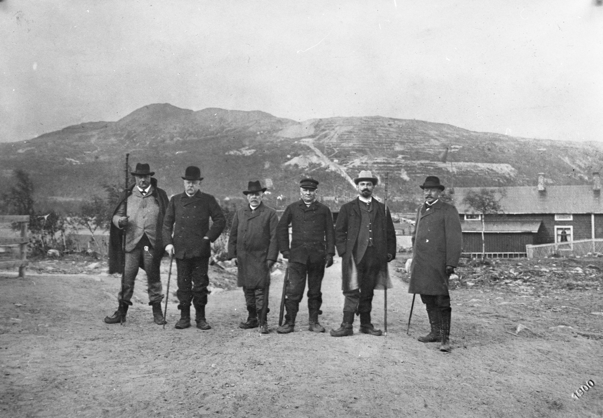 Stadsråd och generaldirektör på besök. Luossavaara i bakgrunden. Hjalmar Lundbohm