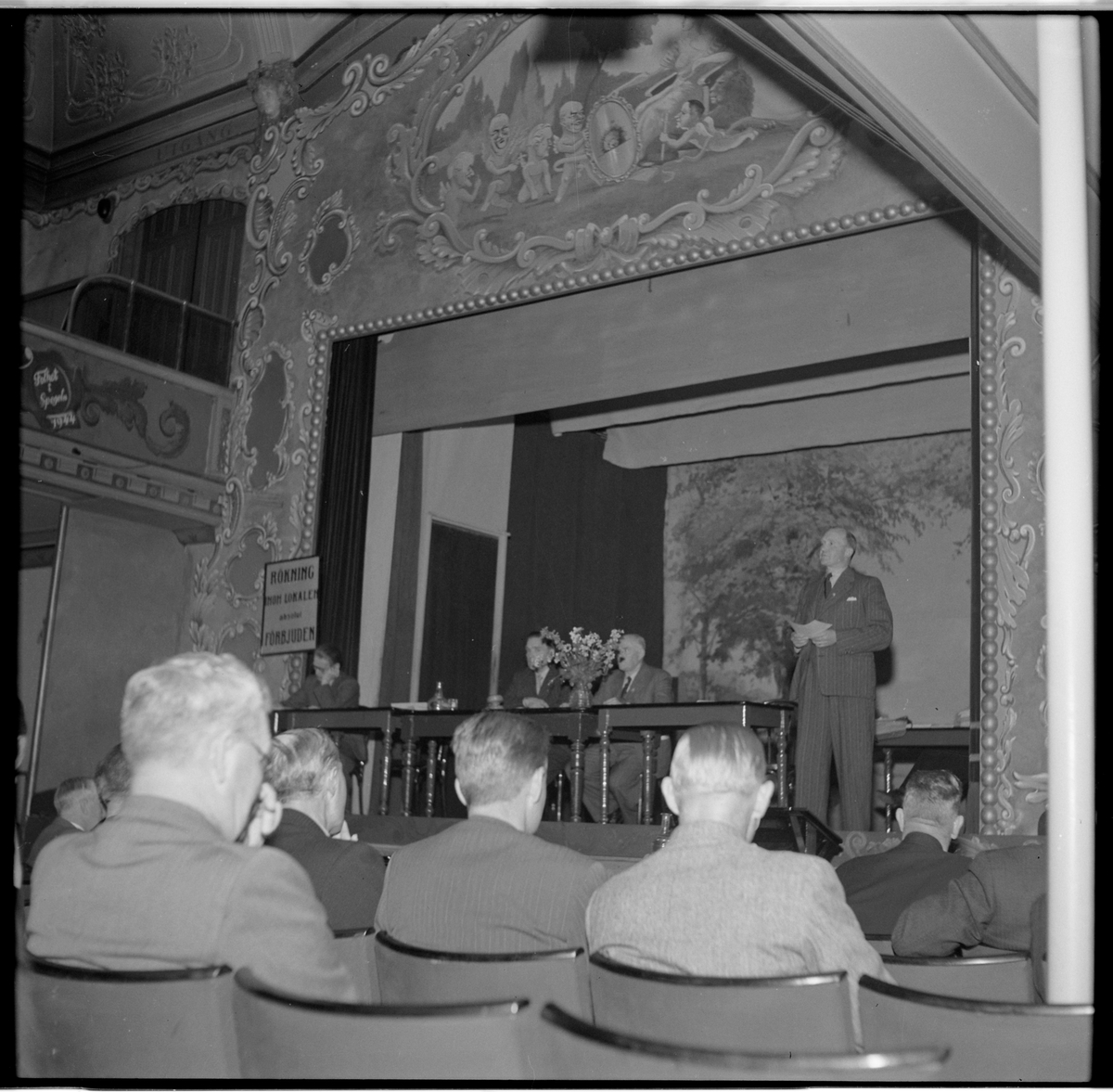 Man talar inför åhörare på Folkets hus teatern i Stockholm.