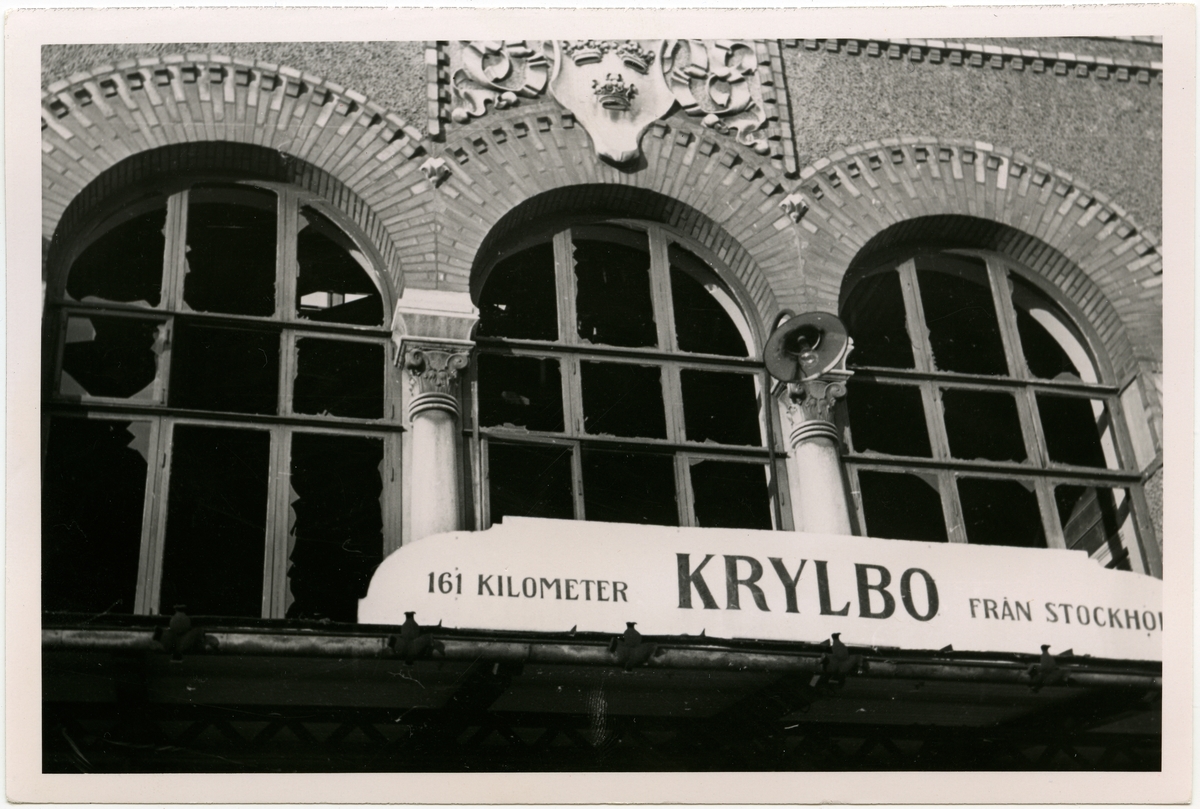 Krylbo-olyckan. Fönster ovanför ingången till stationen.