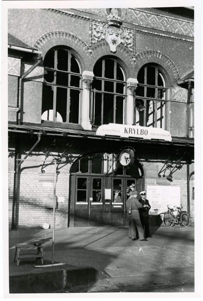Krylbo-olyckan. Nyfikna invånare tittar på förödelsen inifrån stationshuset.