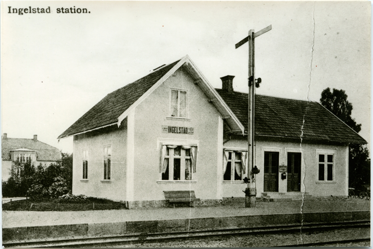 Station anlagd 1897. Envånings putsad stationsbyggnad med två gavlar mot banan .