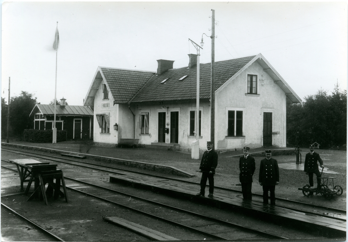 Station anlagd 1897. Envånings putsad stationsbyggnad med två gavlar mot banan .
