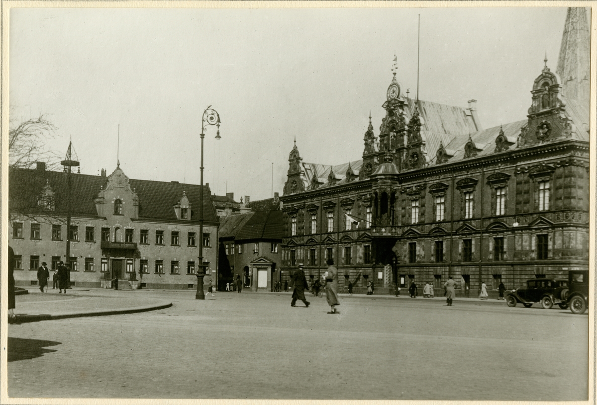 En del av stortorget på 1930-talet i Malmö. Fotografen Alfred B. Nilsons föddes 1866-06-11.