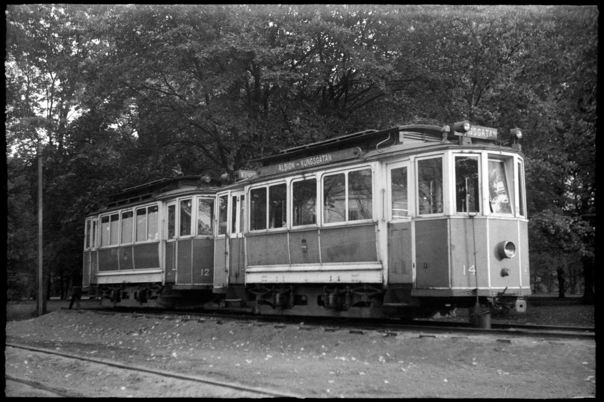 Vid hållplats i Stadsträdgården står Gävle Stads Spårvägar, GSS 12 och 14. Spårvagn GSS 14 trafikerade linjen Albion - Södra och Norra Kungsgatan.
