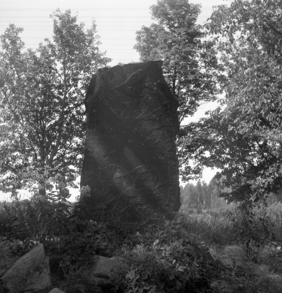 Minnessten i samma stil som runsten, vid orten Runhällen. Stenen pryds av ett bevingat hjul, samt inskriptionen SGG (Sala-Gysinge-Gävle Järnväg) och EHR (Enköping-Heby-Runhällens Järnväg), samt årtalen 1901 och 1905. Troligtvis rest 1905 i samband med att privatbanan EHRJ anslöts till Runhällens station.