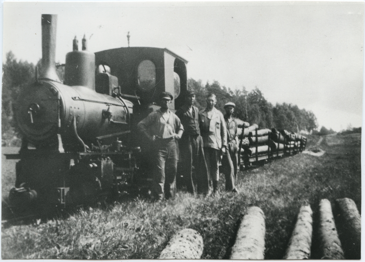 Loket "Putte" nere vid Båvens strand. Loket gick mellan åren 1914 till 1934 mellan sjön Likstammen och Båven med 6 timmervagnar.