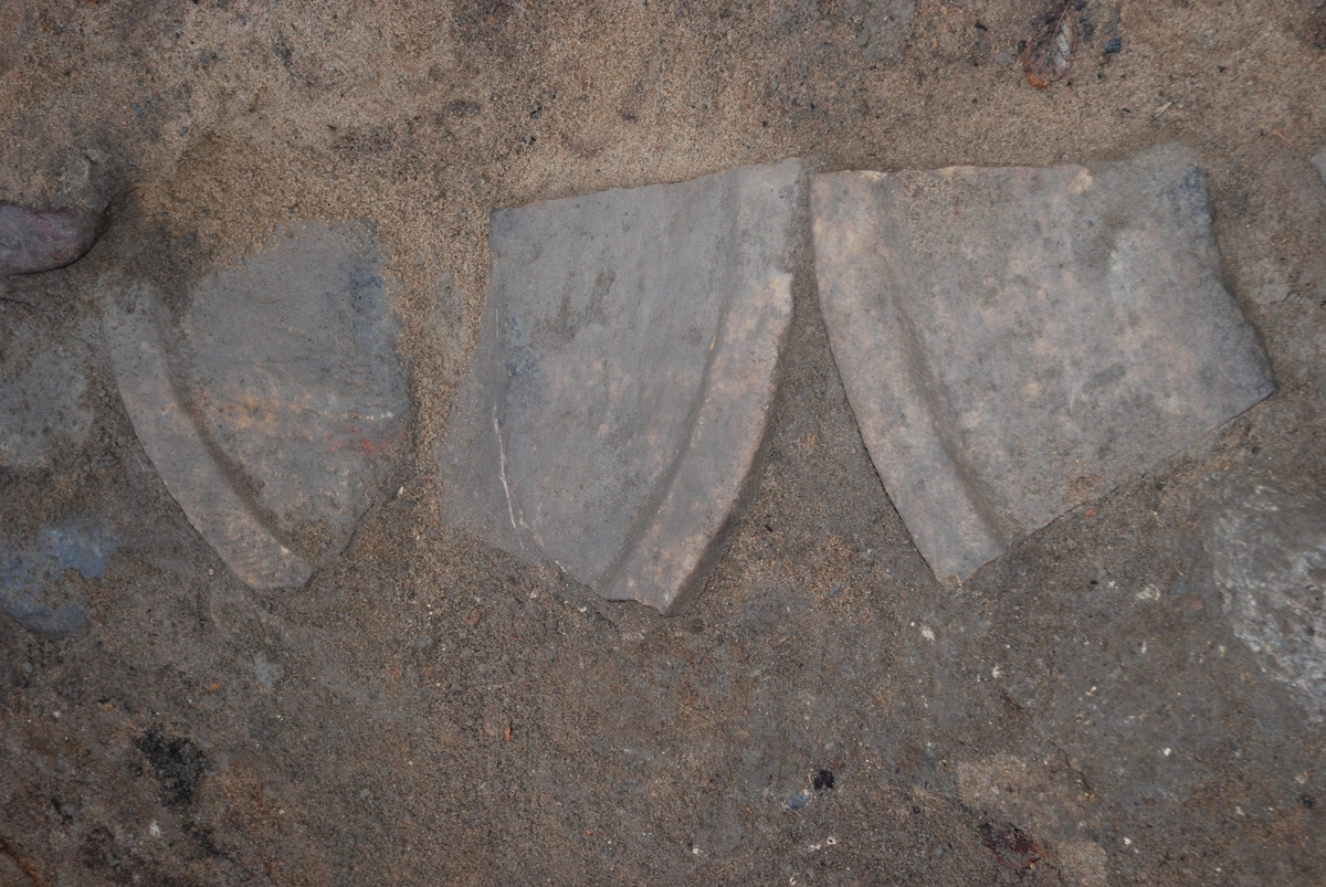Återanvända stendetaljer, sekundärt använda vid anläggand av grunden i ett hus som påträffades vid en arkeologisk undersökning inom kvarteret Diplomaten i centrala Jönköping. Det aktuella huset, hus 400:1 uppfördes omkring år 1637.