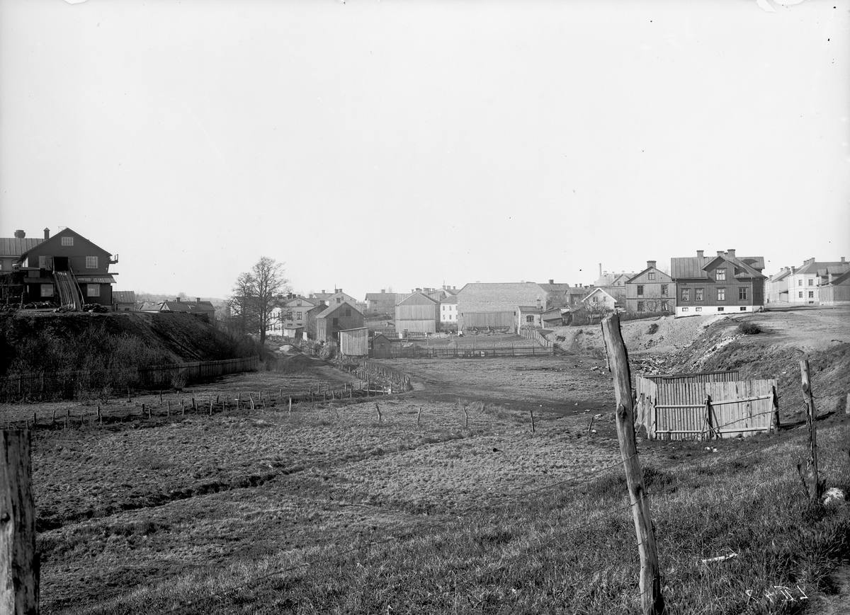 Junebäcken i Jönköping, åt norr från den blivande Friaredalen. Till vänster Junebro Askfabrik. Till höger oreglerad bebyggelse mellan Gröna gatan, Åsenvägen och den senare anlagda Kristinedalsgatan.