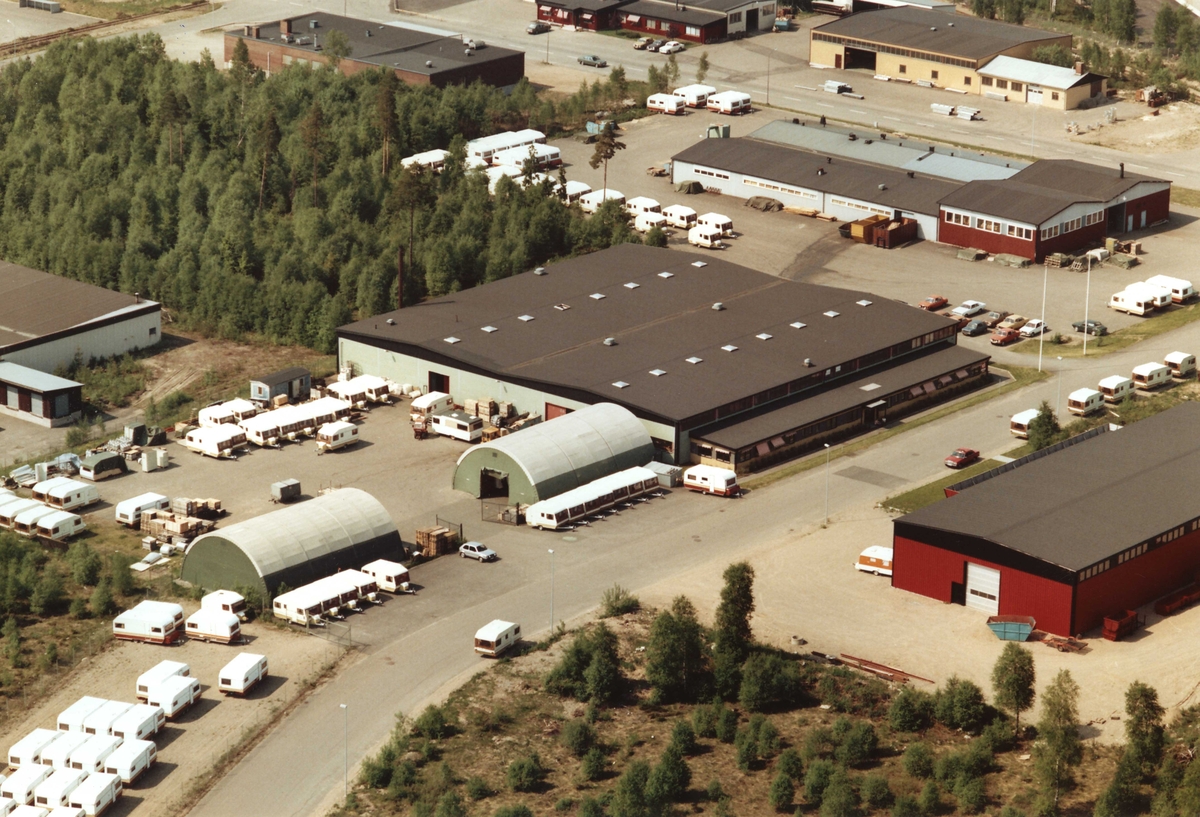 Flygfoto över fastigheter på Svetsaregatan 3 och 4 i Sävsjö industriområde.