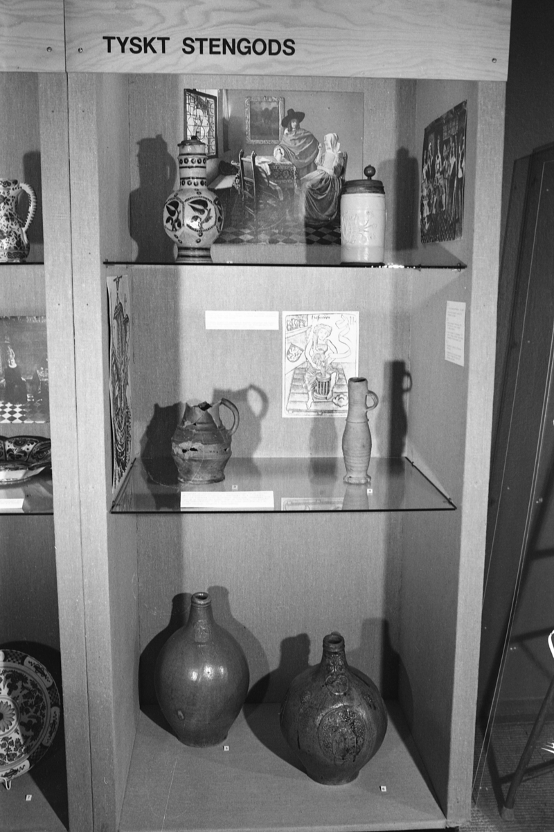 Jönköpings läns museum, keramikutställning. Rum 1, norra väggen. Tyskt stengods.