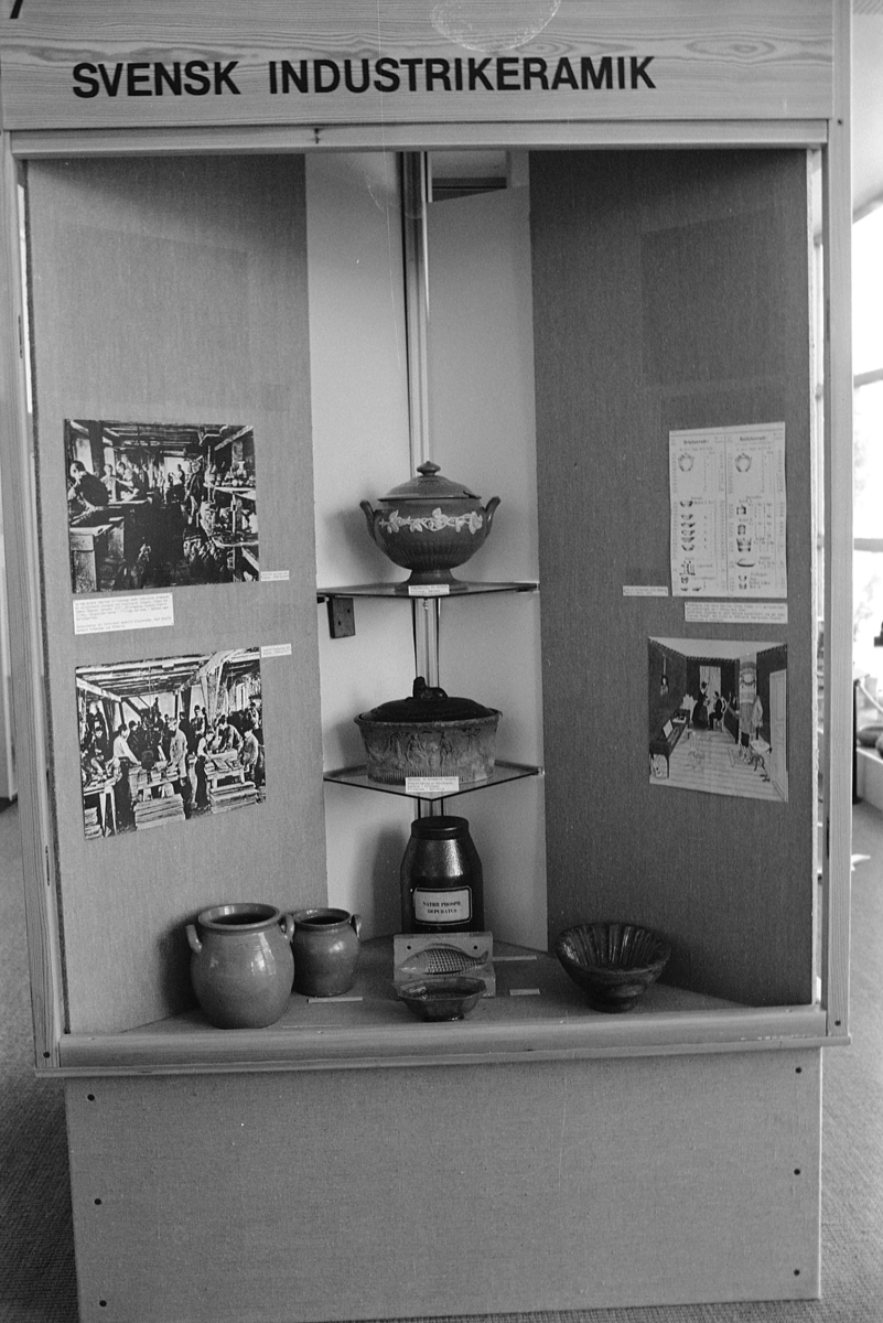 Titel: Jönköpings läns museum, keramikutställning. Rum 2, fristående monter. Svensk industrikeramik.