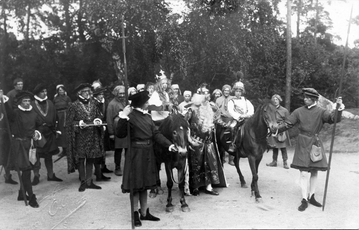 Teaterföreställning för barn på Skansen i Stockholm, "Mats, Petter och prinsessan som fick trollöron", ett sagospel av John Bauer. Urpremiär