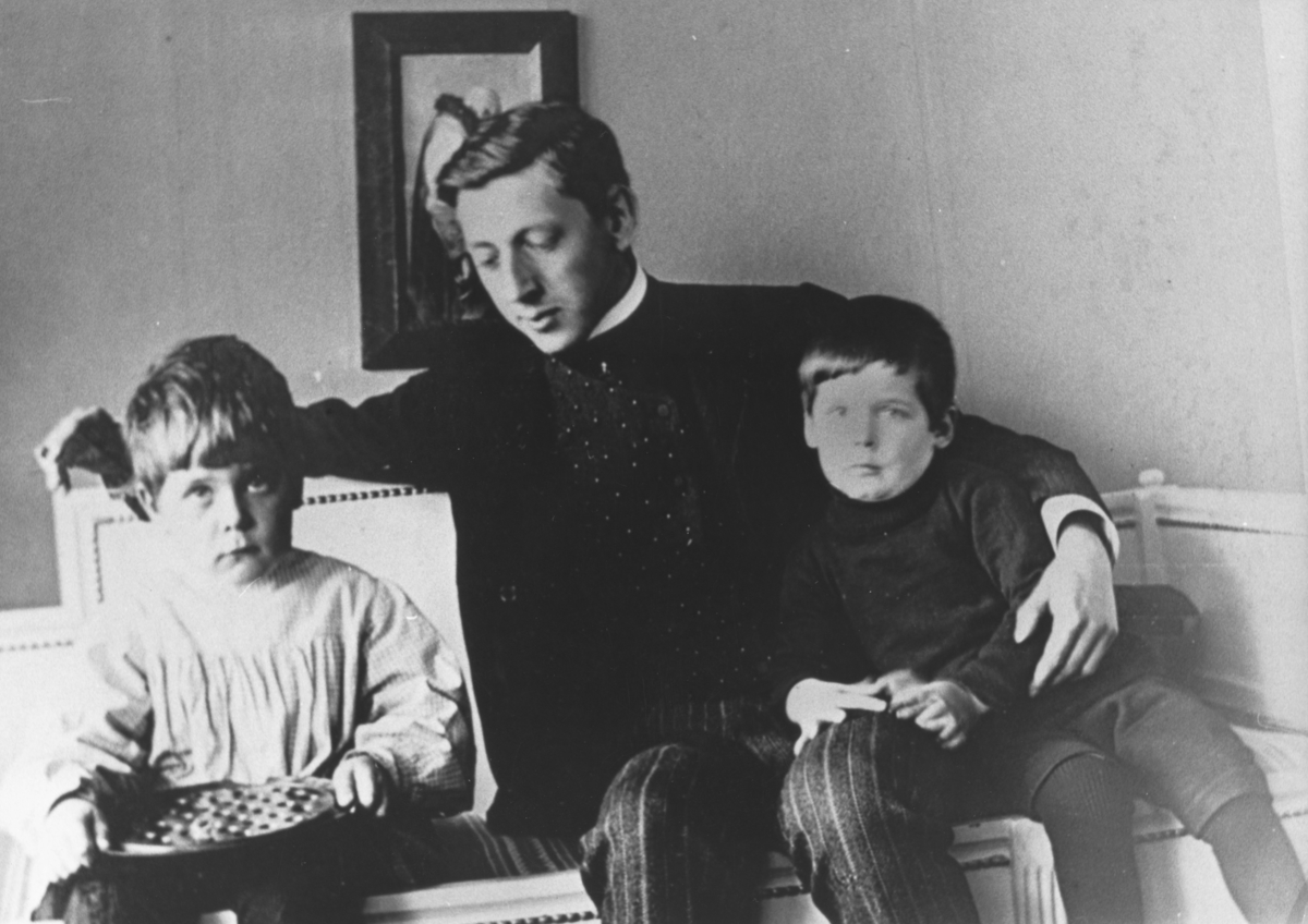 John Bauer tillsammans med Gurli Hertzman-Ericsons barn i Göteborg, troligen år 1907.
