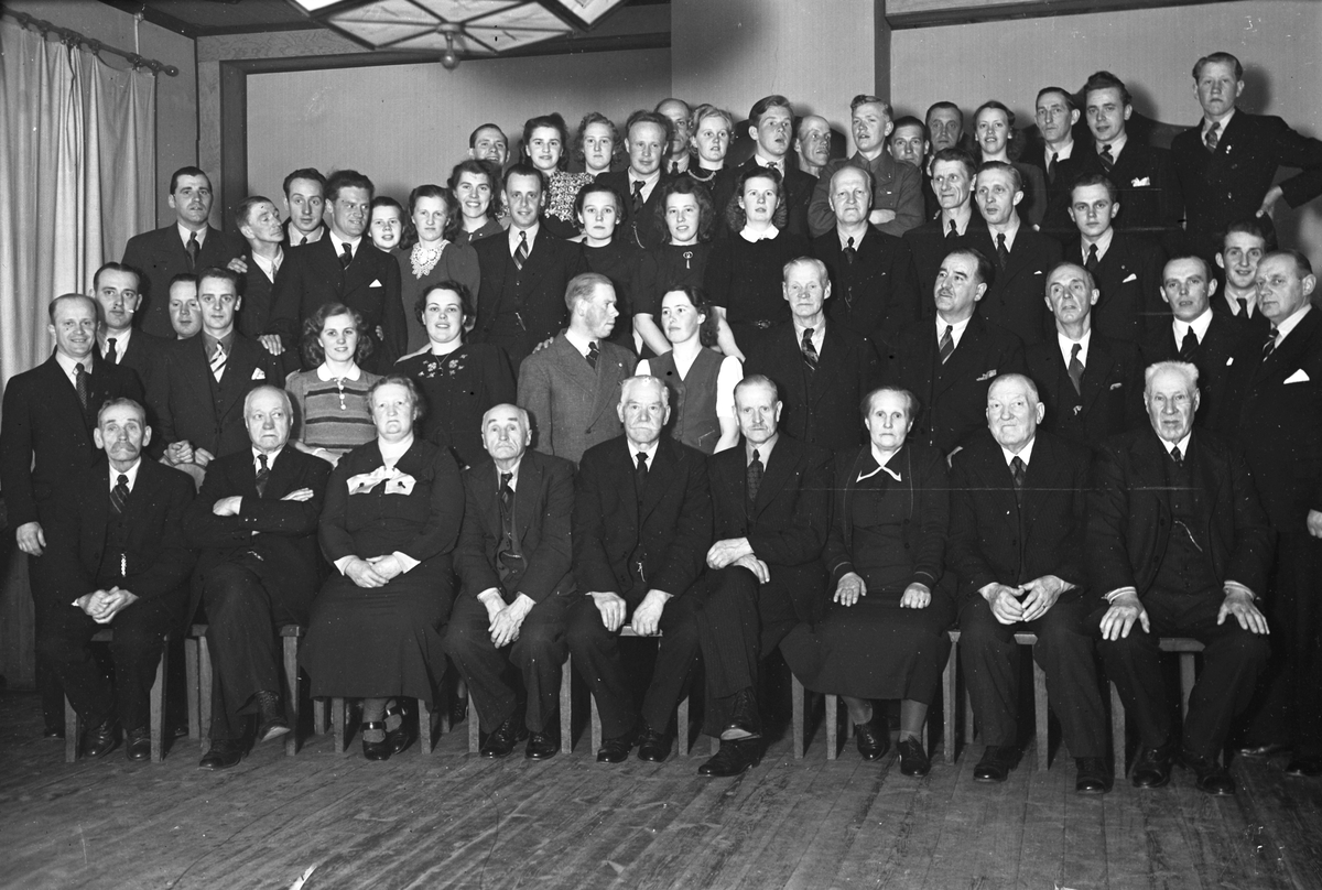 Kvinnor och män i en samlingslokal.
