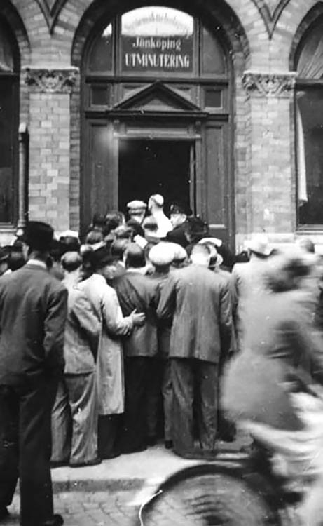 Det är trängsel utanför Systembolaget vid Barnarpsgatan - Brunnsgatan i Jönköping.