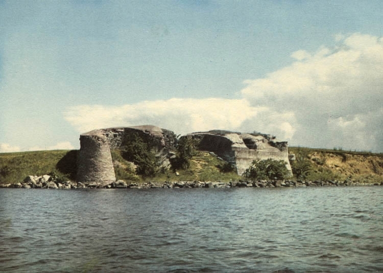 Vykort med motiv från Näs slott, en borgruin från 1100-talet på Visingsös södra spets.