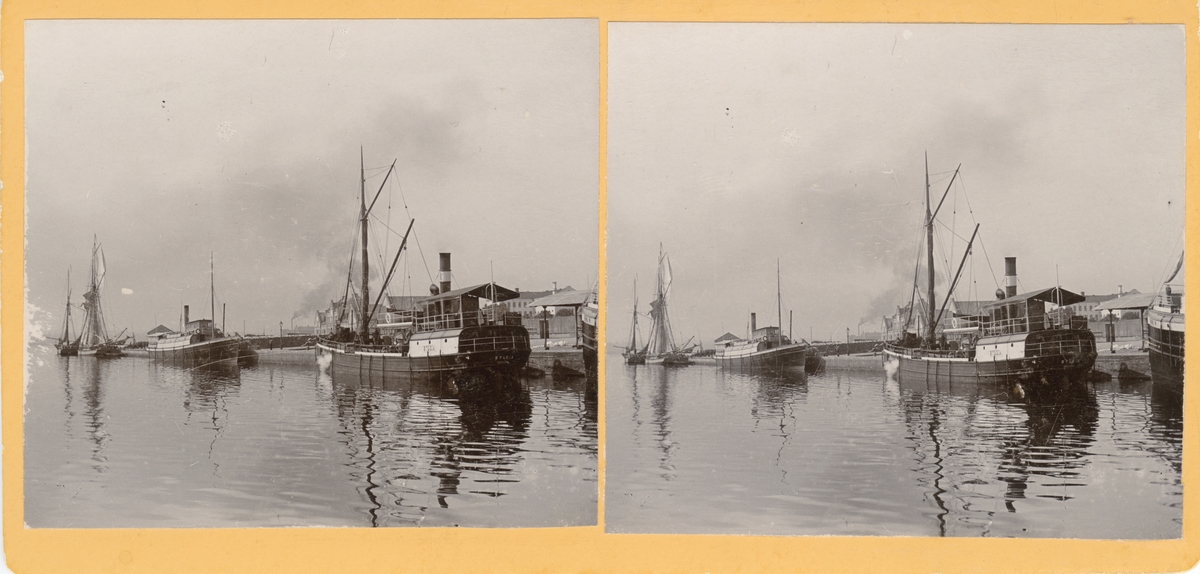 I Jönköpings inre hamn i Munksjön ligger ångfartyget Bylgia för ankar. Fartyget till vänster om Bylgia är SS Östern.