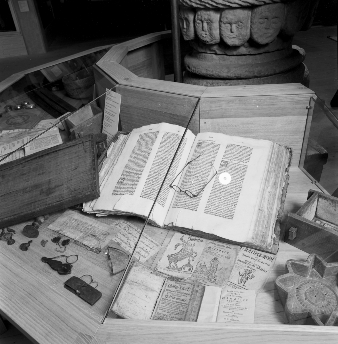 Utställning Tiotusen år. Monter med föremål från medeltiden