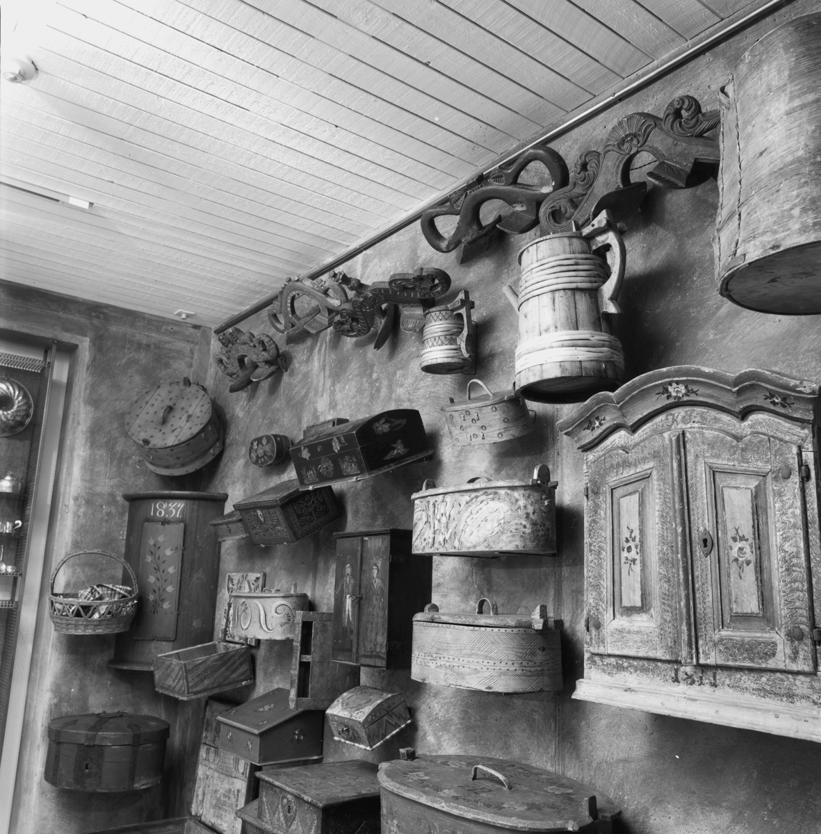 Titel: Utställning Tiotusen år. Festrummet 1800-talet, här visades föremål som användes till fester och högtider.