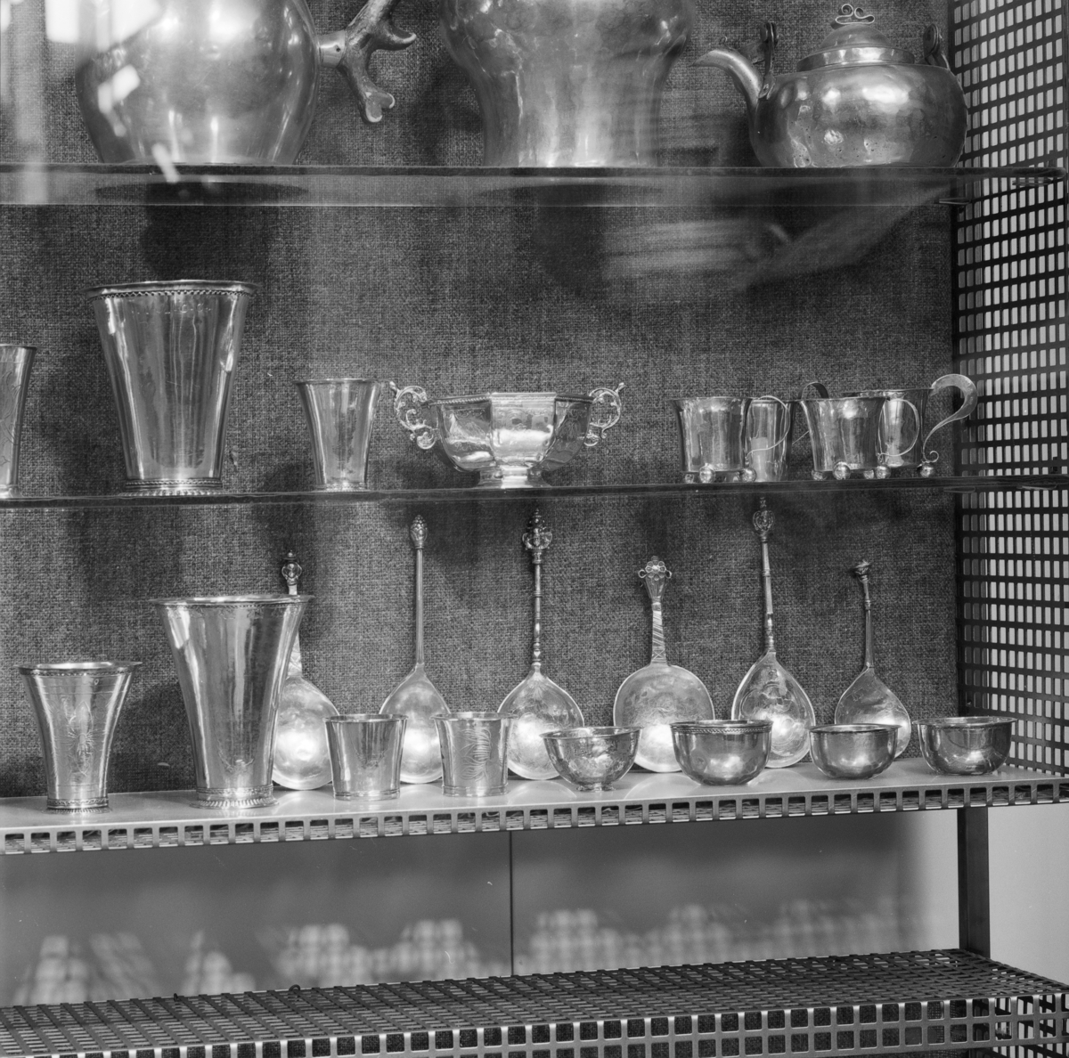 Utställning Tiotusen år. I utställningsdelen Festrummet finns denna monter med olika kannor och skedar.