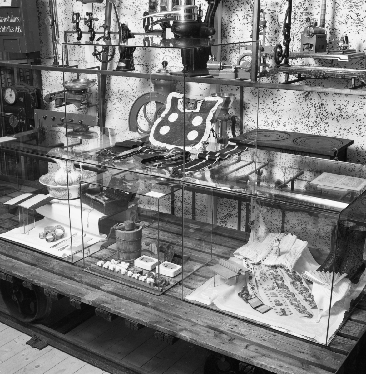 Utställning Tiotusen år. Utställningsdelen Tågvagnarna, översikt över glasmontrarna 4:1, 4:2, 4:3