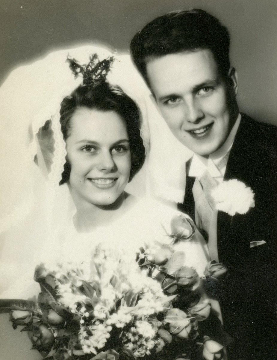 Bröllopsfoto av Lisbeth Nyhlén (född 1945) och Svante Ekman (1944 - 1992), okänd plats och årtal.