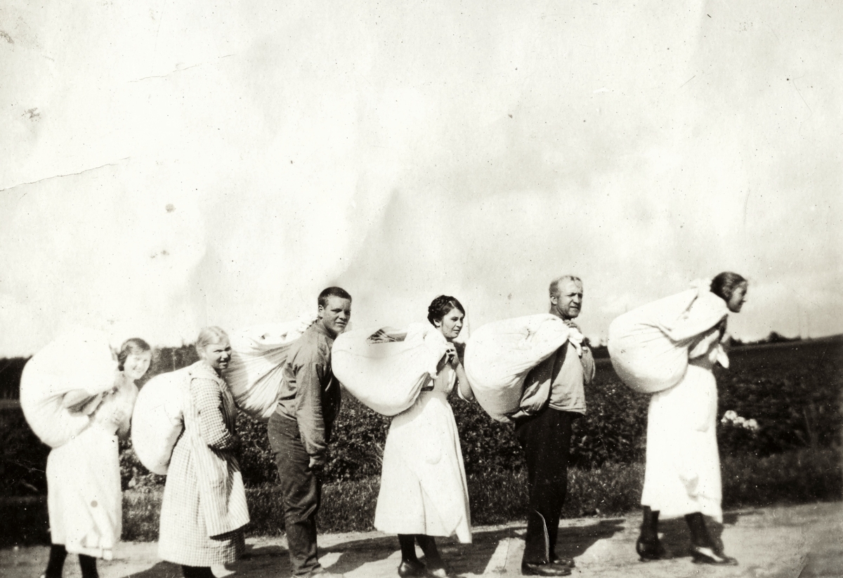 Personal och elever från Stretereds vårdhem är på väg till Kållered-Tvätten på Streteredsvägen 36 B (se A0956 - A0958), okänt årtal.