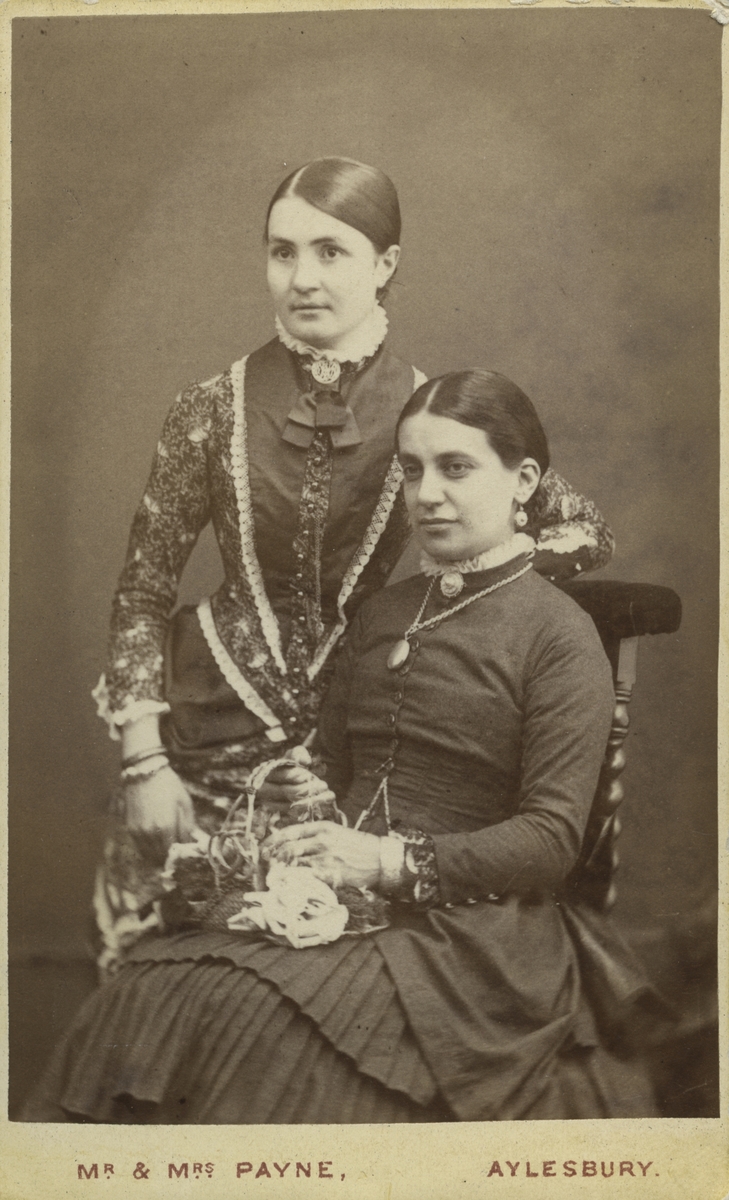 Titel: Två kvinnor. Majken Swedlund till vänster samt Whitte 1882, enligt svårläst text på baksida.