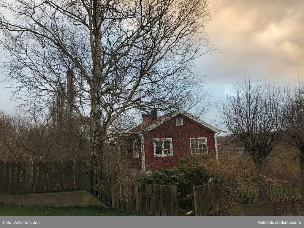 Rödmålat bostadshus i trä med adress Streteredsvägen 8 i Våmmedal, Kållered, i Mölndals kommun. Fastighetesbeteckning är Våmmedal 2:65. Fotografi taget i mars 2020. Byggnadsdokumentation inför rivning.