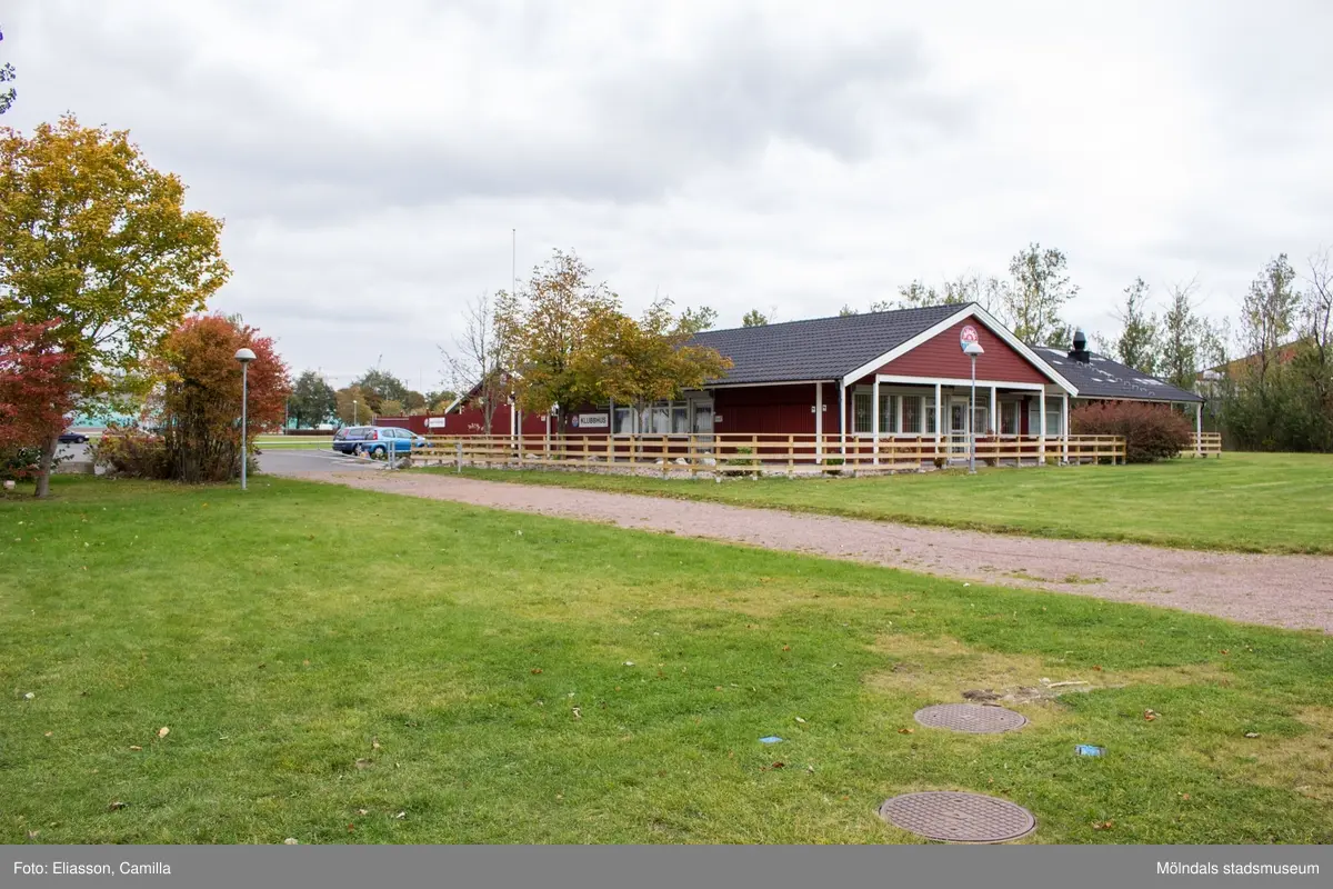 Mölndals AIK Sportcamp med adress Idrottsvägen 13 i Åby, Mölndal, den 11 oktober 2016. Vy mot nordost.