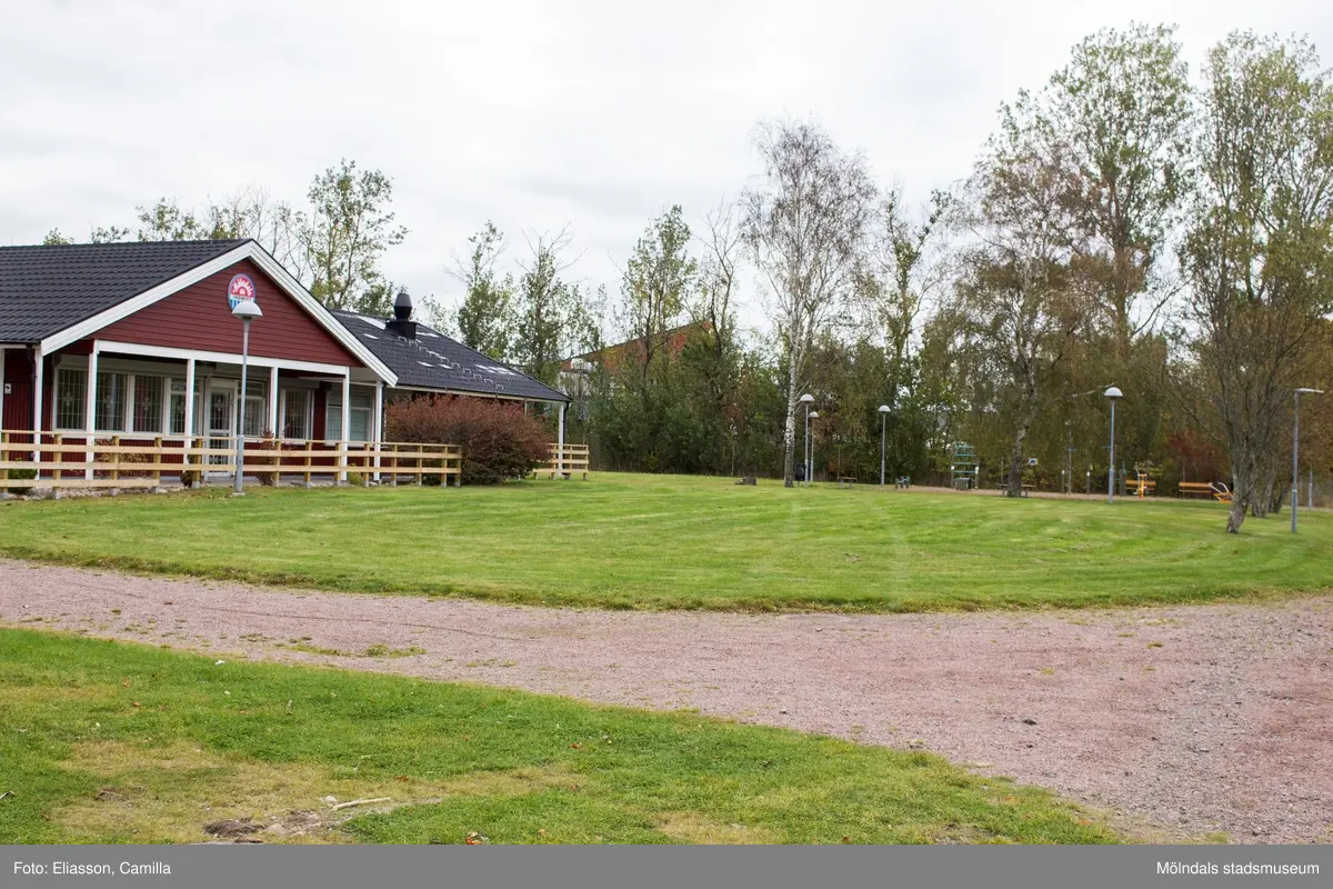 Mölndals AIK Sportcamp med adress Idrottsvägen 13 i Åby, Mölndal, den 11 oktober 2016. Vy söderut, mot Balltorpsbäcken.