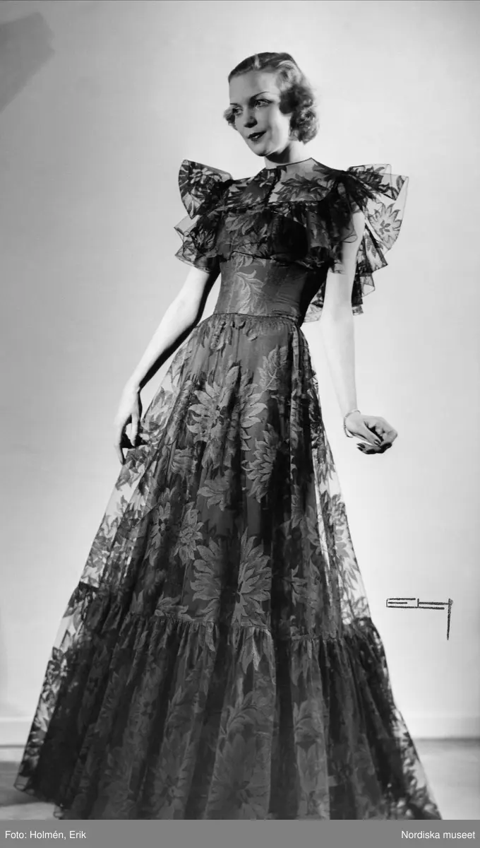 Aftonklänning i tyll och spets. NK:s Franska damskrädderi.