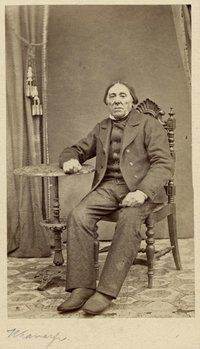 En sittande man, klädd i sina helgdagskläder