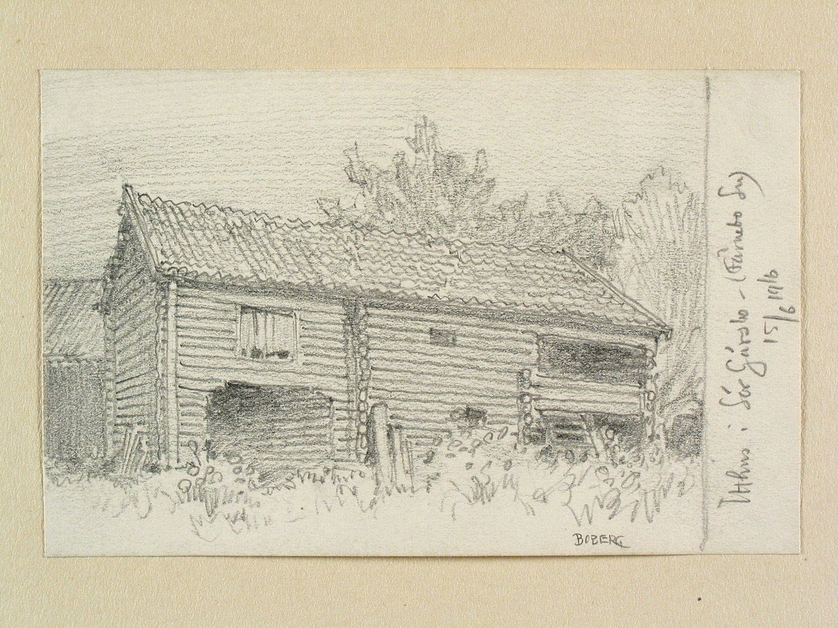 Västmanland, Vagnsbro hd., Västerfärnebo sn. "Uthus i Sörgärsbo". Teckning av Ferdinand Boberg.