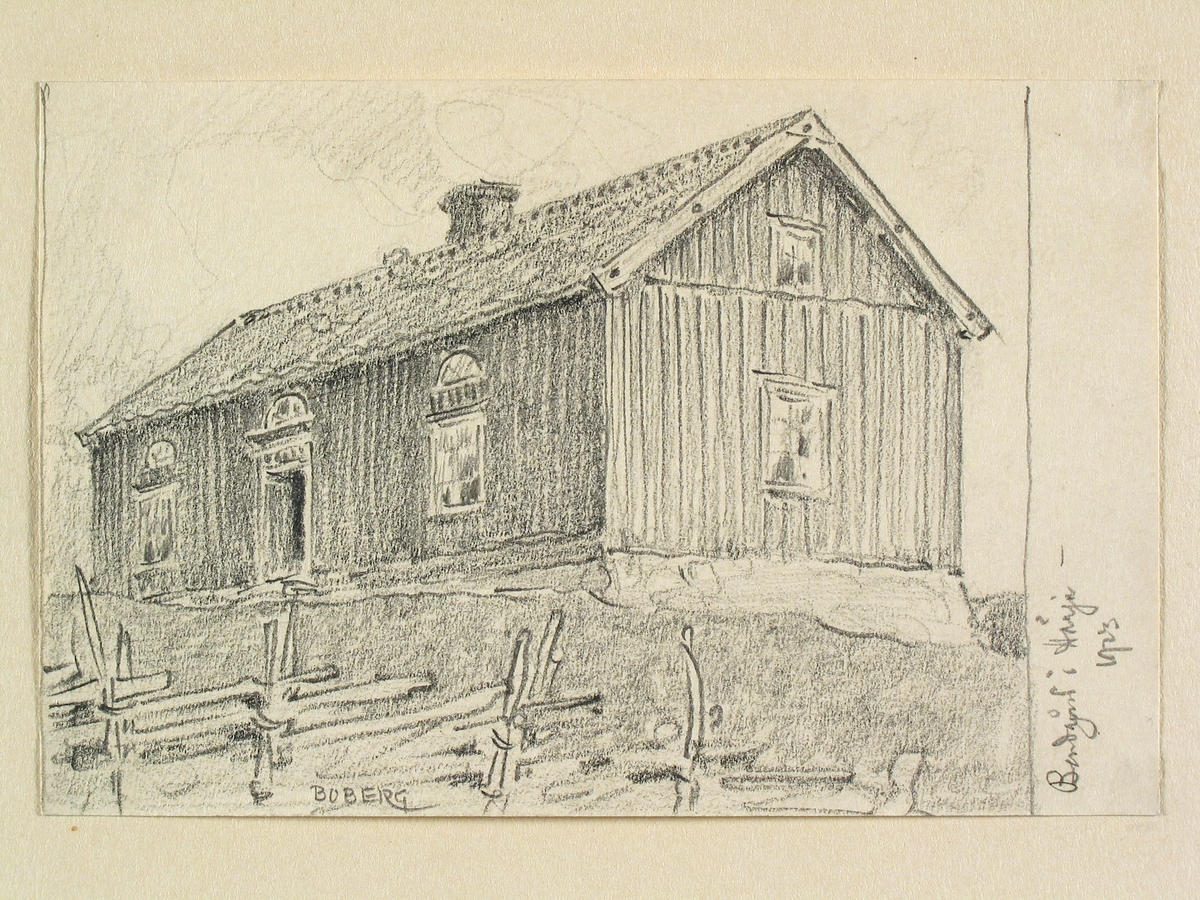 Västergötland, Vartofta hd. "Bondgård i Härja". Teckning av Ferdinand Boberg.