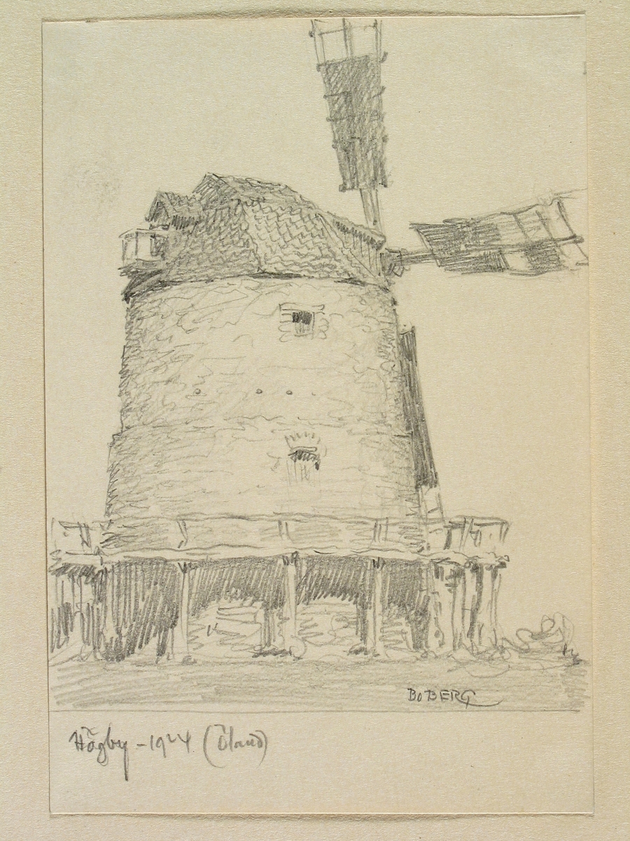 Öland, Åkerby hd., Högby sn. Väderkvarn. Teckning av Ferdinand Boberg.