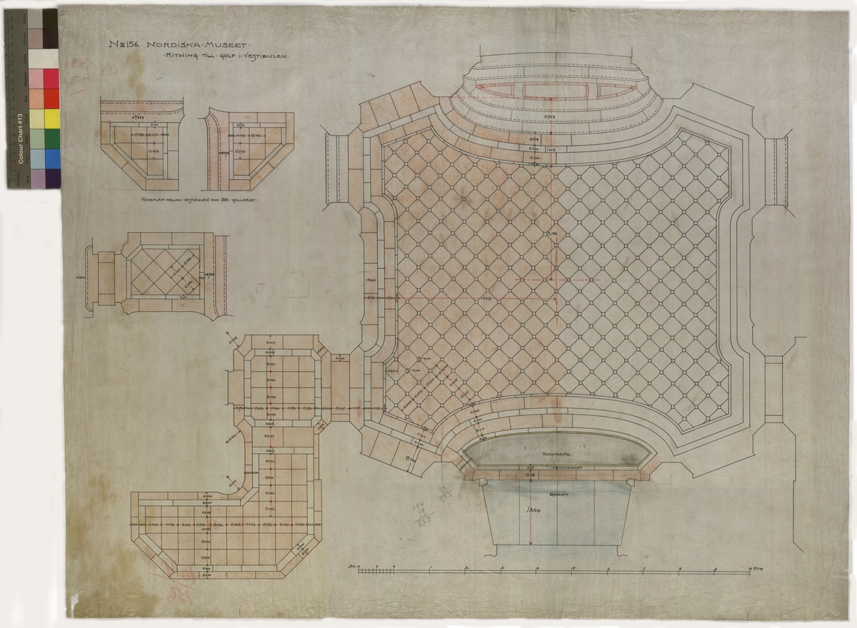 No 156. Nordiska Museet. Ritning till Golf i Vestibulen. Vändplan mellan vestibulen och 1sta galleriet.