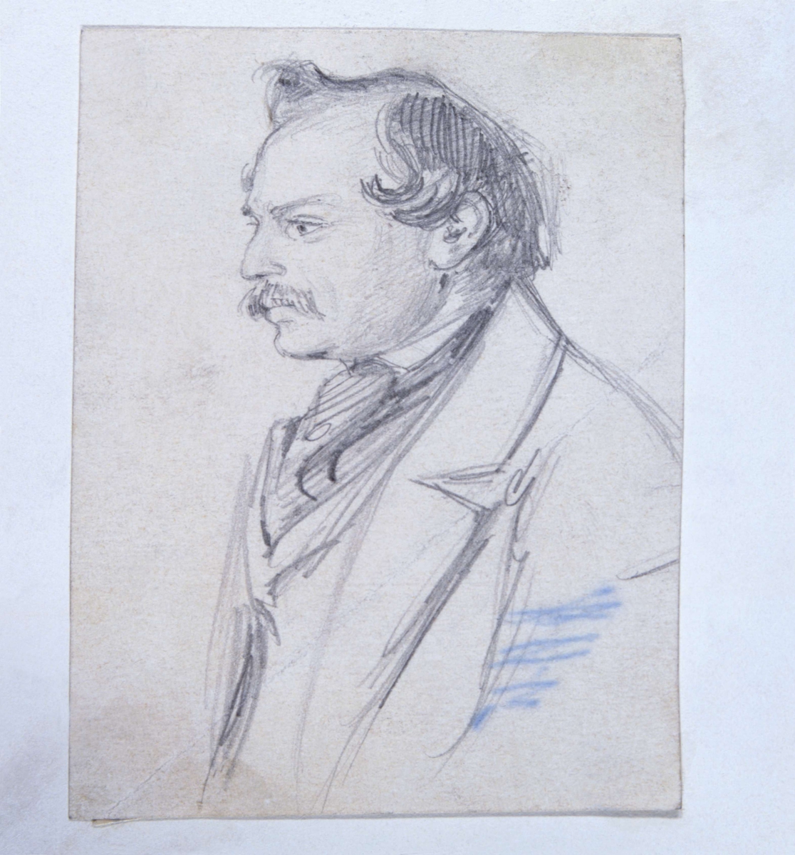 "Mandelgren, porträtt". Blyertsteckning av Fritz von Dardel.