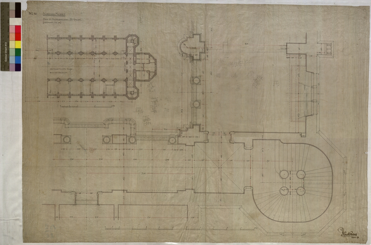 No 20 Nordiska museet. Plan af allmogehallens i:sta Galleri ( Våningen 1 tr upp) Allmogehallens plan. Bottenvåningen.