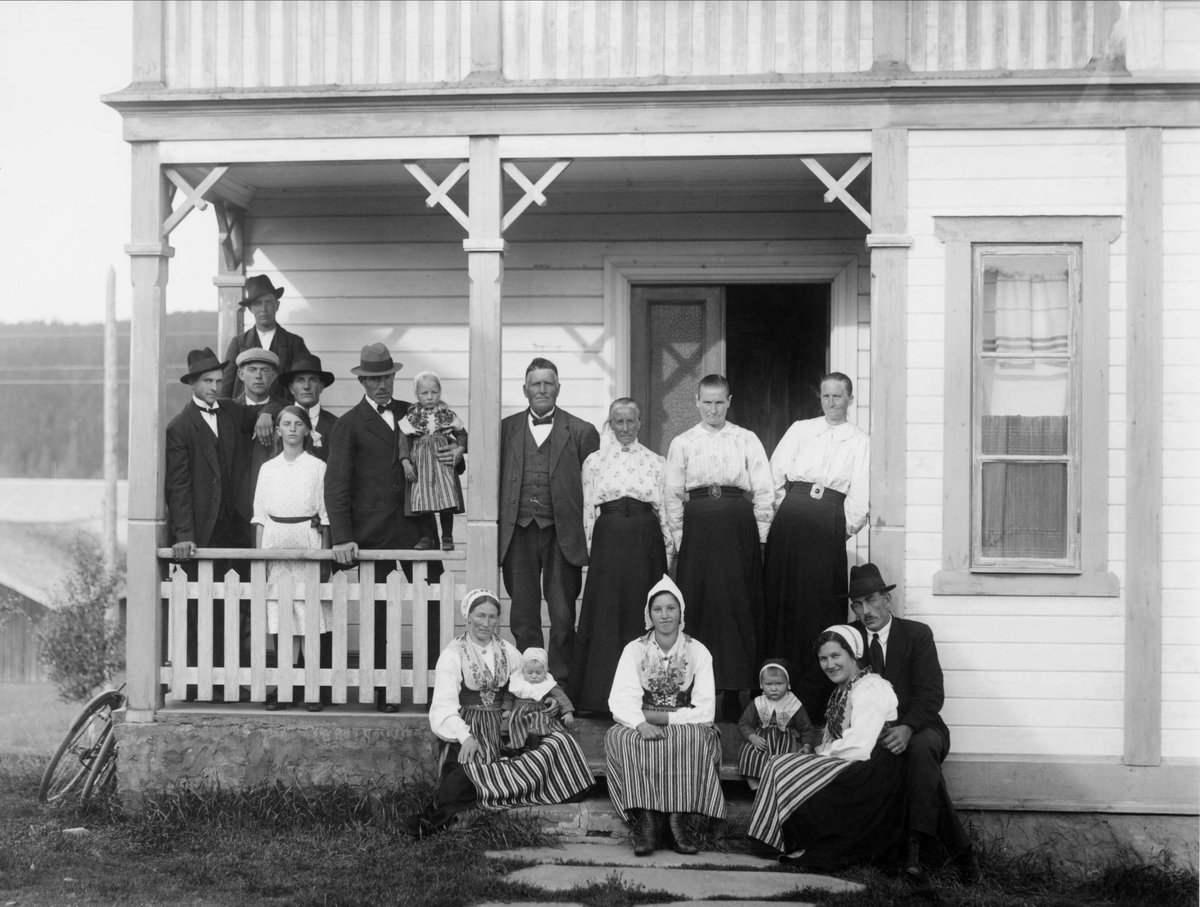 Hos Bois Per Larsson i Biskopsbyn. Britta f. Persdotter, Martina Eriksson, Bois Kari Eriksson, Bois Gerda i Leksandsdräkt. Lima socken, Dalarna