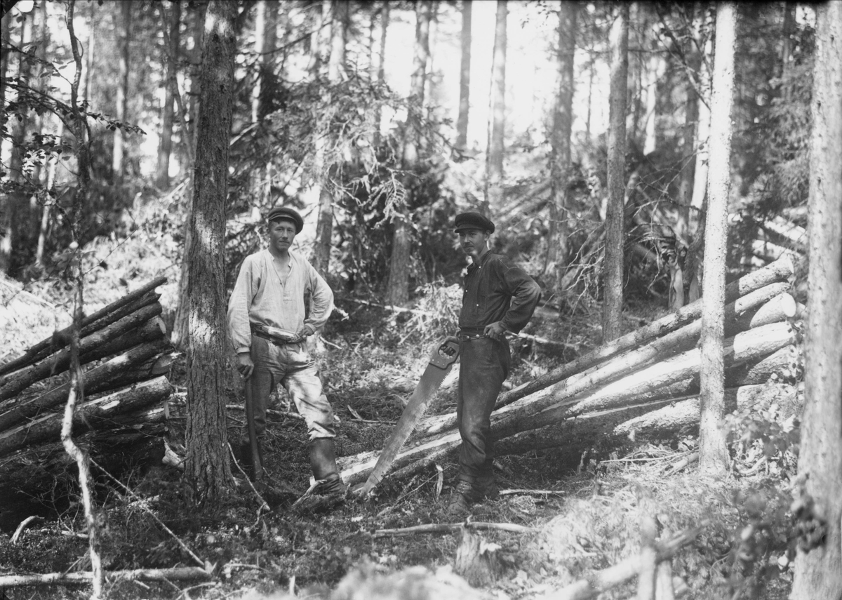"Skogsarbetare Erik Fogel o Oskar Ljungberg."