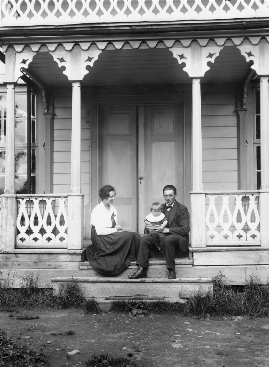 Folkskollärare Ragnar Rönnberg med fru Karin och sonen Vilhelm. Lärare vid Valla skola Torgås och Risätra skola senare lärare på Donsö