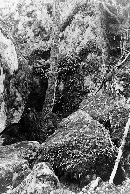 Grotta, stora porten till Stenkälla, en man.