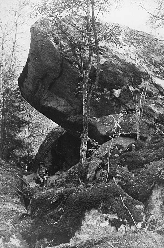 Stendösliknande klippgrupp, en man.