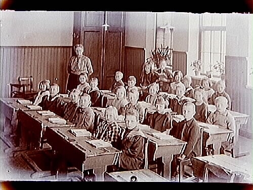 Rudbecksskolan, klassrumsinteriör, 24 skolbarn med lärare.