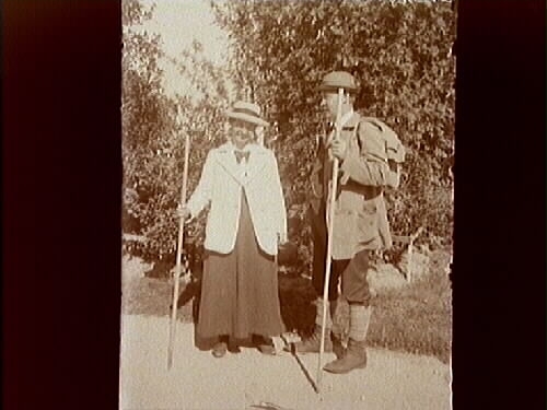 21/8 1916, äldre par, promenadklädd kvinna och man