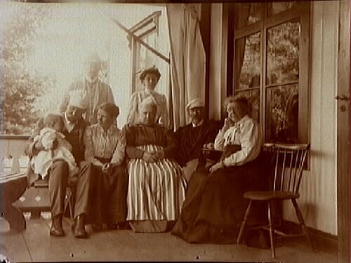 Lerbäcks Prästgård, släktgrupp på veranda.