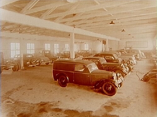 Bilverkstad, interiör av verkstaden med bilar.