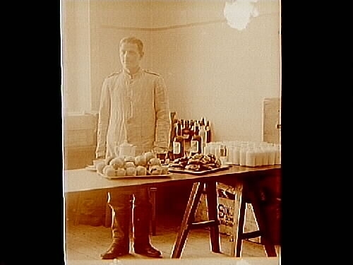 En soldat vid kaffebordet.
