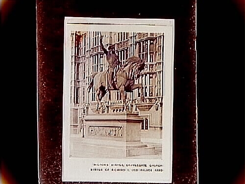 Ryttarstatyn Richard I vid Cripplegate kyrkan i England.